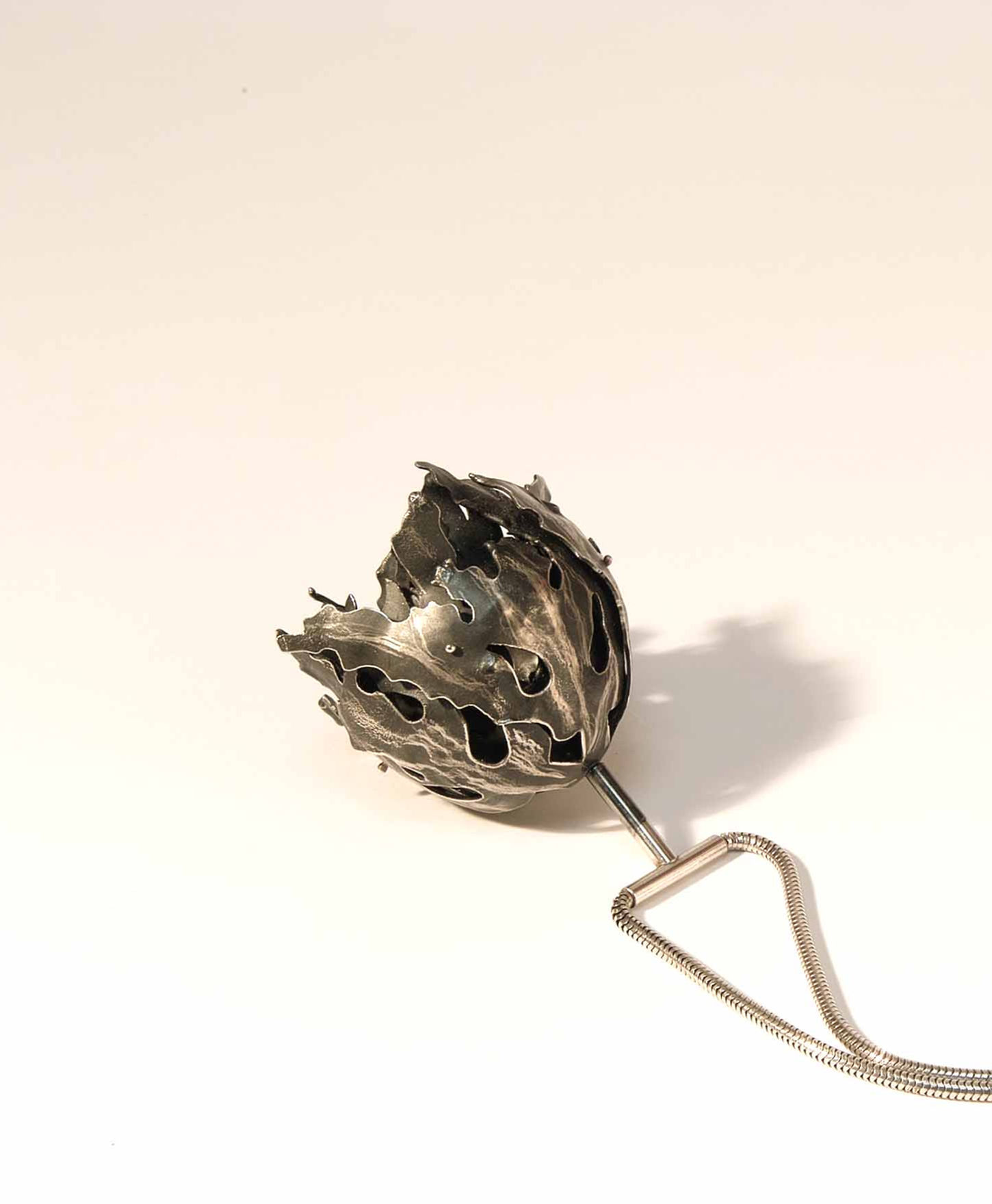 Truike Verdegaal is een Nederlands sieradenontwerper en edelsmid. Zij volgde opleidingen aan de Vakschool in Schoonhoven, de Koninklijke Academie van Beeldende Kunsten in Den Haag en aan de Gerrit Rietveld Academie in Amsterdam. Het collier in de collectie De Witte Zwaan is gemaakt van gezwart sterling zilver en bestaat uit een eenvoudige ketting met daaraan een vrij grote hanger in de vorm van een tulpen. De bloem is prachtig in detail vormgegeven en bestaat uit meerdere losse, zeer dunne, zilveren bloembladeren. In de kelk zit een bloedkoralen staafje dat de stamper of meeldraad verbeeld en een witte saffier als dauw druppel. De tulp is aan de buitenkant gesigneerd door de kunstenaar.